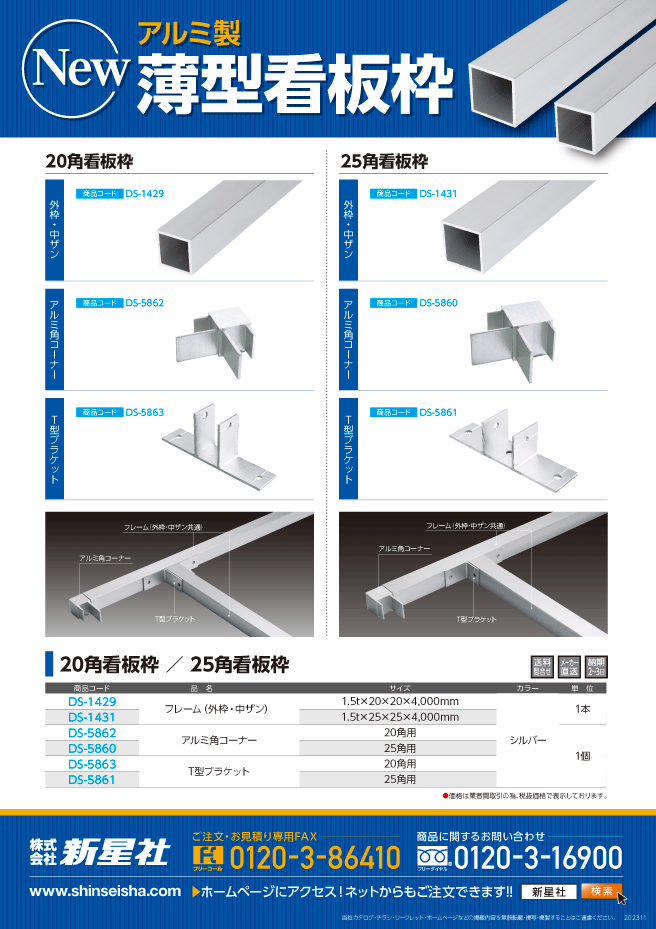 【11月】アルミ製薄型看板枠 新サイズ登場!!