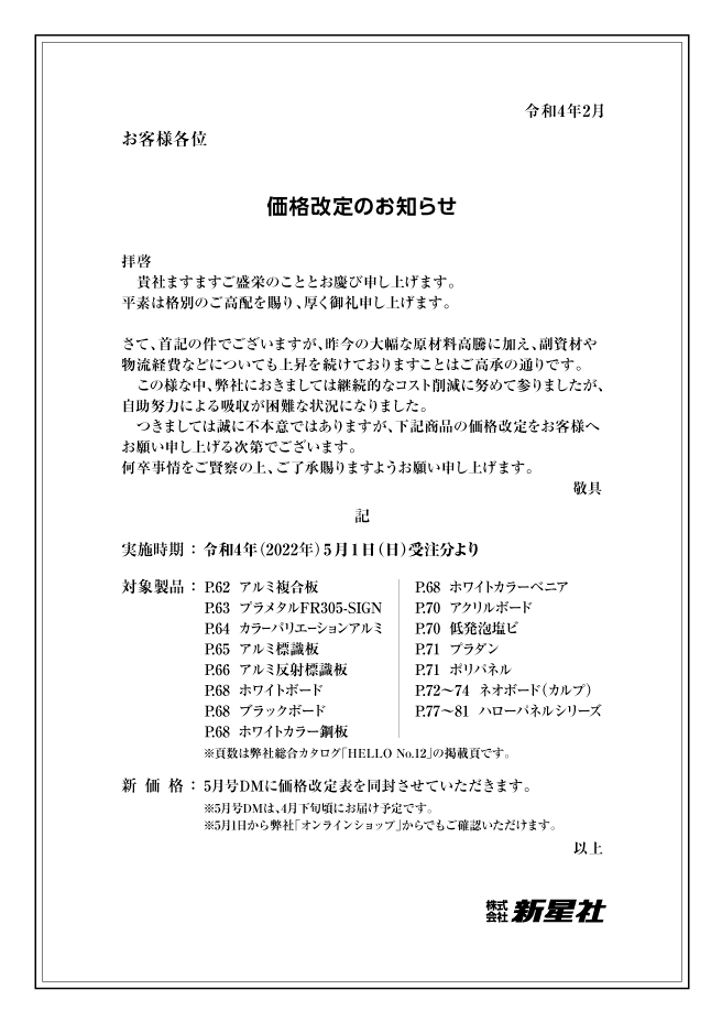 溶剤系対応IJメディア「ターポリン」 価格改定のご案内〈8月1日から適用〉