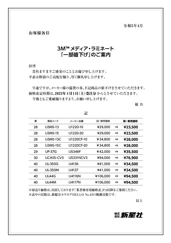 3M™メディア・ラミ 一部値下げ のご案内〈4月1日から適用〉
