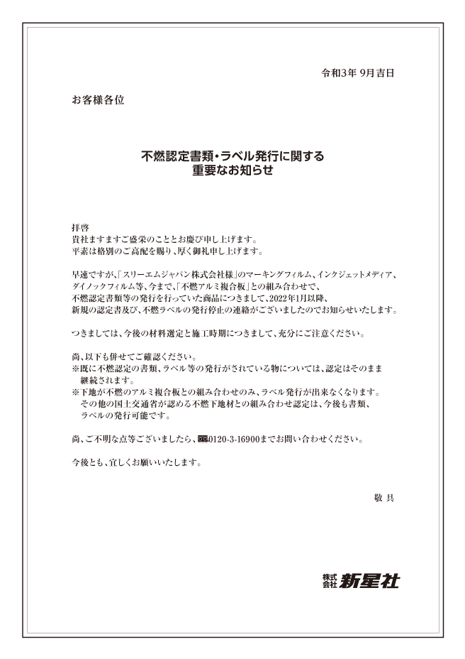 不燃認定書類・ラベル発行に関する 重要なお知らせ