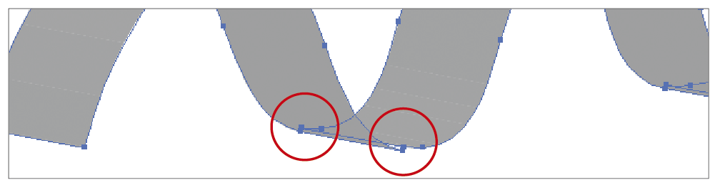 拡大するとリボンの折り目部分がズレて隙間が出来ていますので、厚みになっているアウトライン化の線を削除し、ズレている部分を折り目部分と重なるように修正します。
