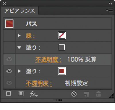 影の部分は、グラデーションの塗りにアピアランスパレットで新規塗りを追加し、20%グレースケールで乗算で重ねます。