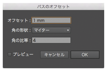 4.パスのオフセットを選択し、少し内側にオフセットします