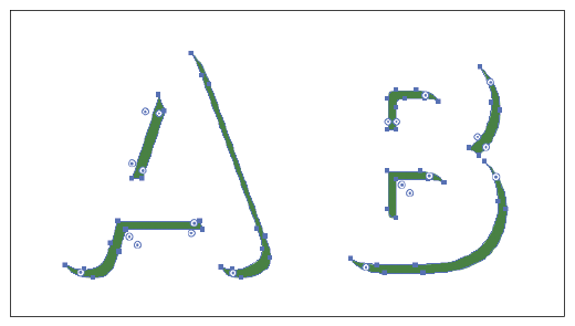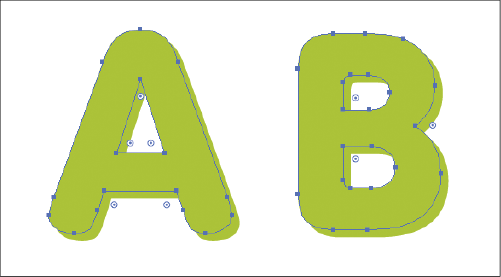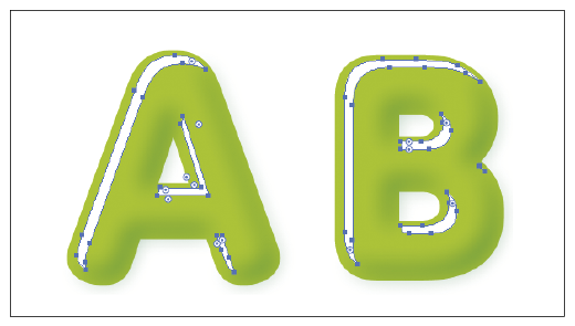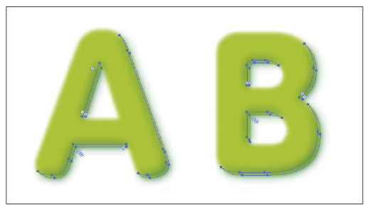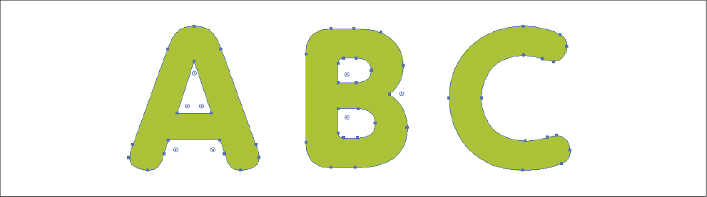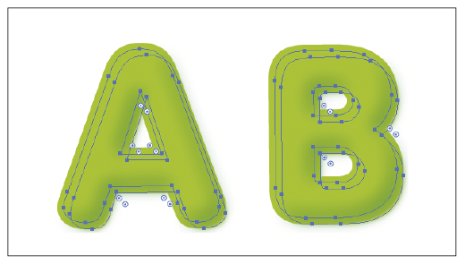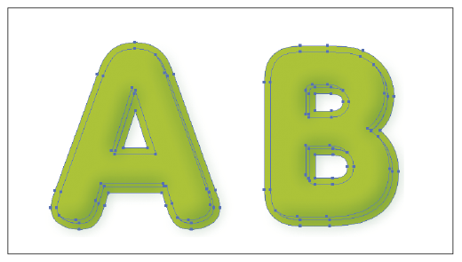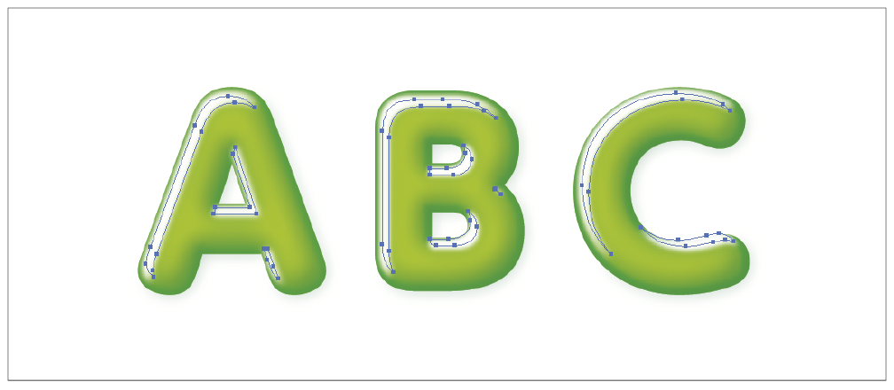 光沢が表現しやすい丸い文字を用意します。文字をアウトライン化し「⌘(ctrl)