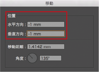ここでは水平方向、垂直方向共に−1mmに設定しました。