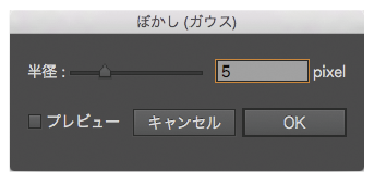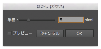 〔効果〕→〔ぼかし(ガウス)〕を選び、オブジェクトがボケるように数値設定します。
