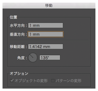 〔オブジェクト〕→〔変形〕→〔移動〕を選び、プレビューを見ながら前面に貼り付