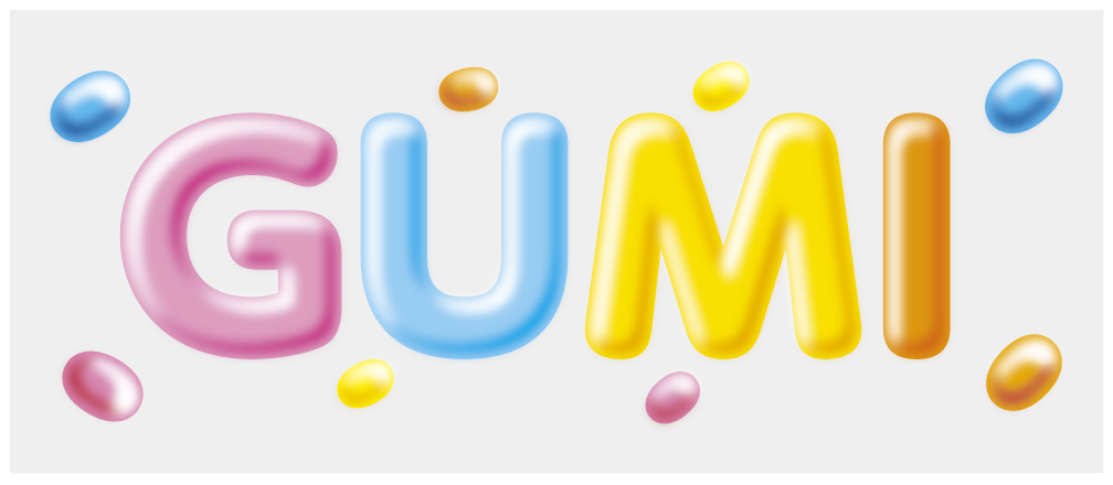 Illustratorのぼかし効果や型抜きを使って、グミのような丸くて立体的な光沢のある文字が制作出来ます。