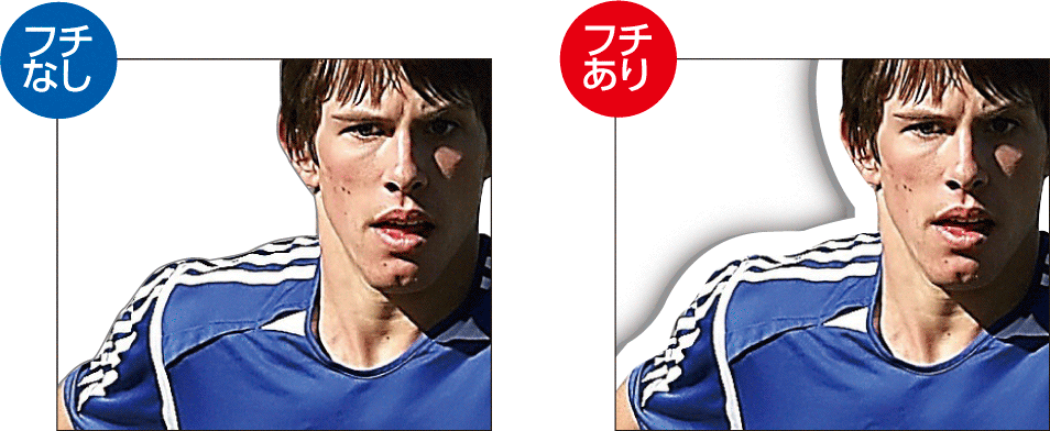 カットの際にズレが生じる場合がありますので、白フチをおすすめいたします。