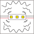 DC12V:LEDモジュールにストレスがかかり 不点灯などの故障を起こす。(過電流・過電圧)