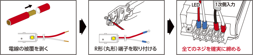 スイッチング電源への接続は、R形(丸形)端子を特にオススメ致します