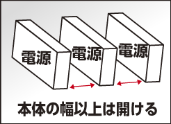 ②電源と電源の間には本体の幅以上の間隔を開ける