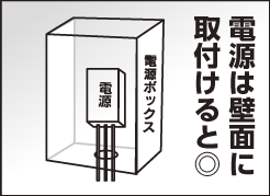 防水電源の場合でも直射日光や雨にさらされない蓄熱しない場所に設置してください
