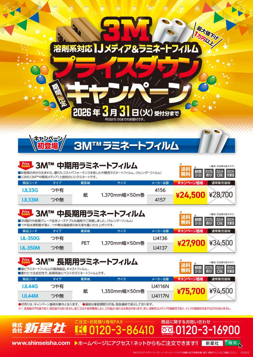 3M IJメディア ラミネートプライスダウンキャンペーン開催!!3/31まで!