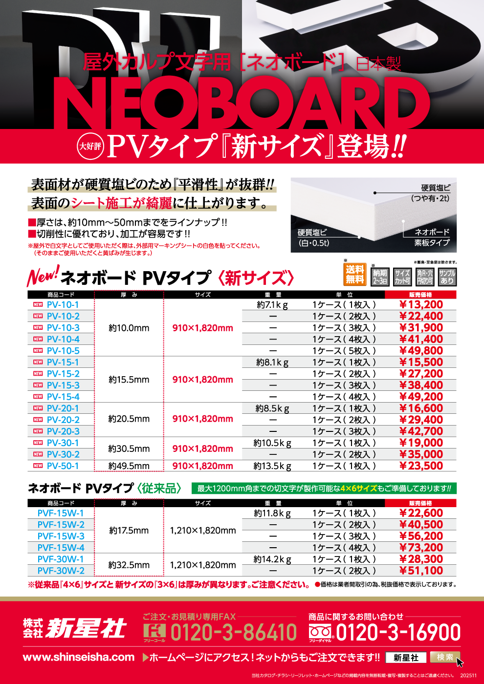 【11月】ネオボードPVタイプ『新サイズ』登場!