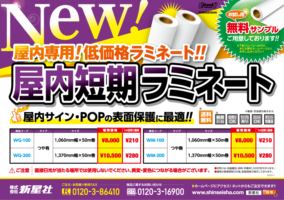 ↓ 屋内短期ラミネート サンプルのご請求はこちら