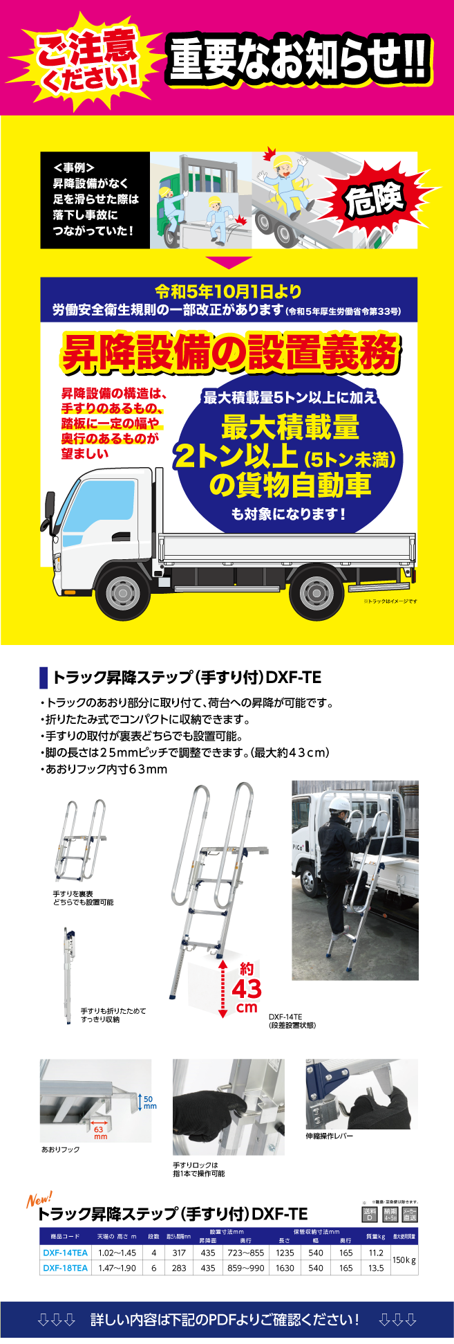 【7月】 〈昇降設備設置義務対策〉トラック昇降ステップ(手すり付)新登場!