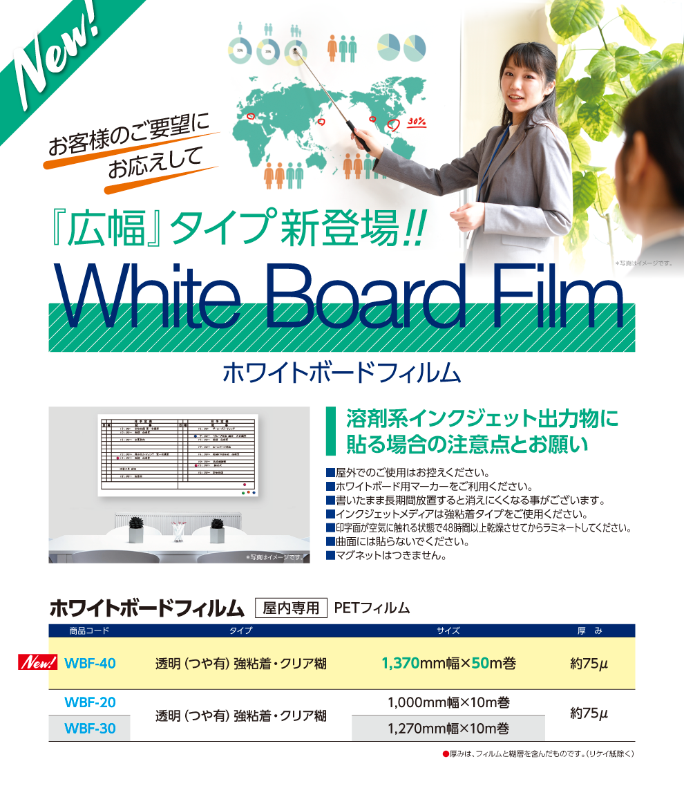【4月】ホワイトボードフィルム 「広幅」タイプ新登場!!