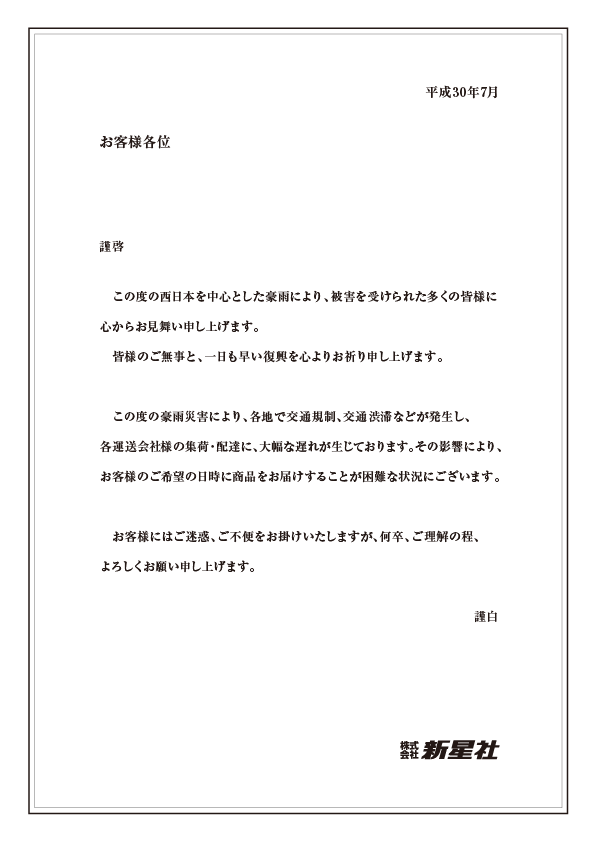 西日本豪雨による荷物遅延のお知らせ